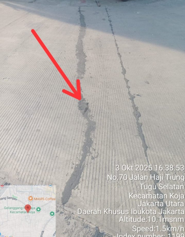 Beranda » “Cacat Mutu” Baru Dikerjakan Proyek Sudin PRKP Jakut Jalan di Rw 03 Tugu Selatan Sudah Retak